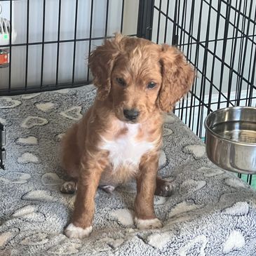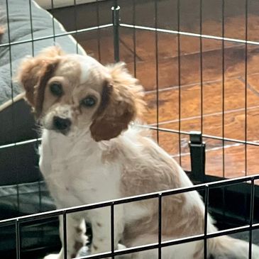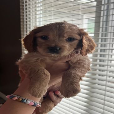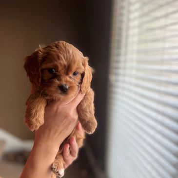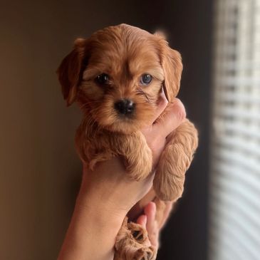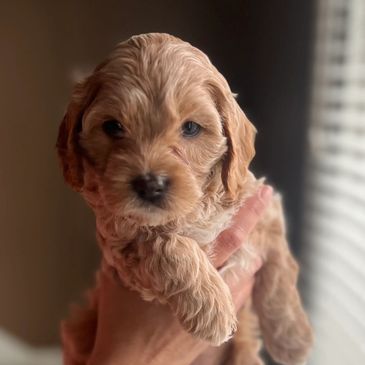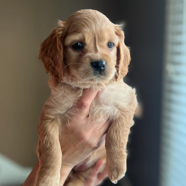 This sweet Cavapoo puppy is full personality and charm! With a gorgeous golden coat, deep brown eyes and an irresistibly soft face, this little one is sure to melt hearts. Playful and curious she is already showing her gentle and affectionate nature that makes Cavapoos such perfect companions.
